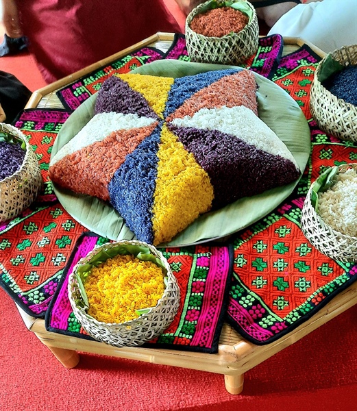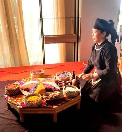 Nghệ nhân Lý Thị Chiên (dân tộc Tày) tác giả của món ăn tiến Vua "Xôi ngũ sắc" trong mâm cỗ Tày Nùng