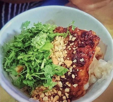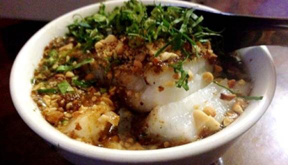 Những lát bánh hình chữ nhật trong suốt màu mật ong, mềm, dai xếp vào đĩa, phía trên rắc vừng, lạc thơm phức. Bánh ăn kèm với nước chấm. Vị chua, ngọt của giấm đường, cay nồng của ớt, vị đậm đà béo ngậy của lạc rang cùng với cảm giác mềm dai nơi đầu lưỡi tạo nên sức hút khó cưỡng.