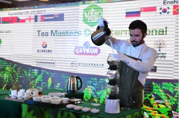 Nghệ nhân trà quốc tế trình diễn kỹ năng pha chế tại các cuộc thi Nghệ nhân trà thế giới trước đó Ảnh: BTC