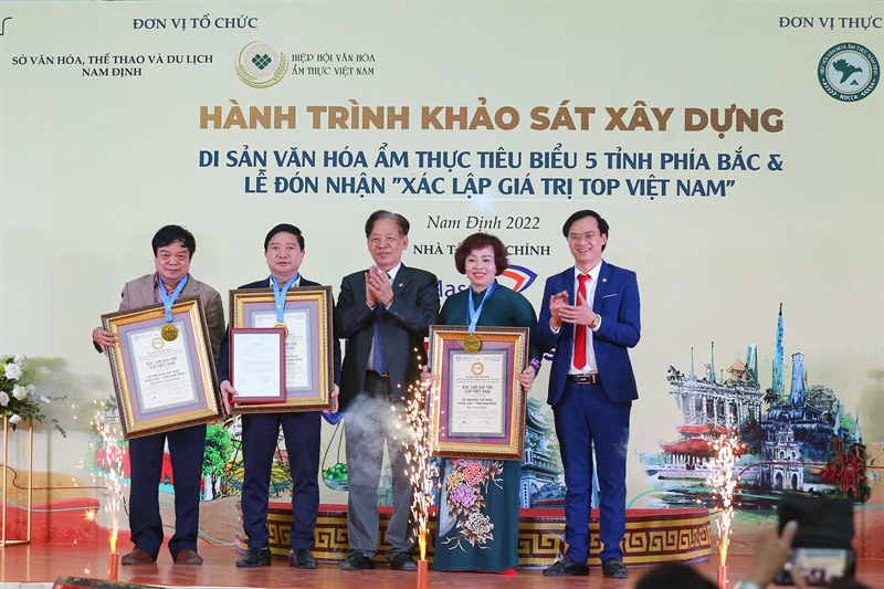 Đại diện Trung tâm kỷ lục Việt Nam trao Bằng xác lập “Top 100 món ăn đặc sản Việt Nam” cho 3 món đặc sản ẩm thực Nam Định