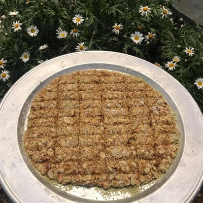 - Rắc nốt chỗ vừng còn lại trên mặt kẹo.
