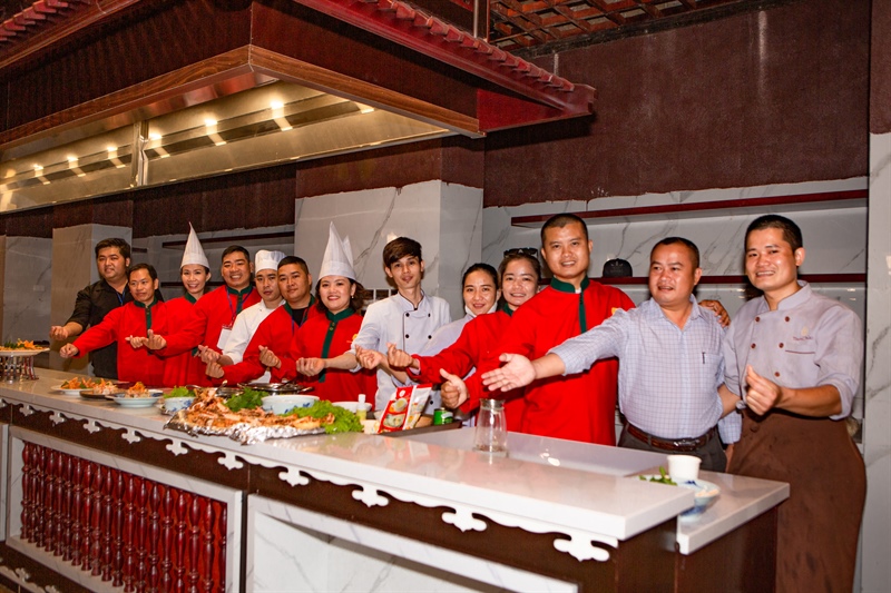 Các chuyên gia, nghệ nhân giao lưu ẩm thực cùng đầu bếp tại khu du lịch tâm linh Tam Chúc.