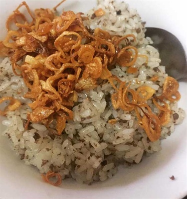 Bước 6: Cho xôi chim ra đĩa, rắc hành khô lên và thưởng thức nhé.