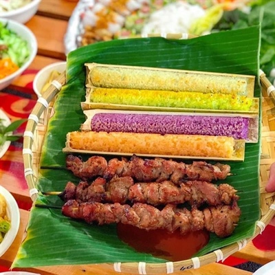 Món thịt nướng ống tre thơm ngon khi ăn cùng cơm lam