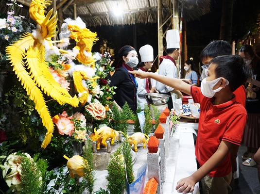 Nghệ thuật trang trí trong ẩm thực cũng rất công phu. Trong ảnh là gian hàng của Trường Cao đẳng Du lịch Huế