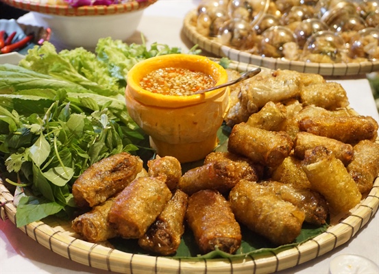 Nhiều du khách háo hức chờ đợi thưởng thức nem công- chả phụng, món ăn được biến tấu từ món cung đình xưa