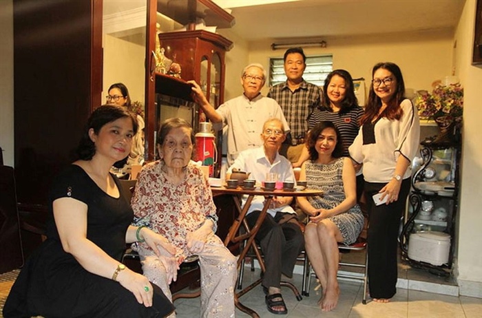 Đoàn phát thanh viên VOV thăm gia đình NSND Tuyết Mai - người thứ 2 bìa trái Ảnh: T.TUẤN