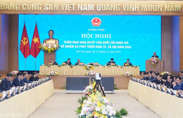Điểm lại kết quả năm 2019, Thủ tướng nhắc đến phát biểu của Tổng Bí thư, Chủ tịch nước Nguyễn Phú Trọng tại Hội nghị là “toàn diện, vượt mức, rất đáng mừng vì trong bối cảnh quốc tế, khu vực như vậy, chúng ta đã thực hiện tốt hơn, cao hơn năm 2018”, nhất là mang lại kết quả tốt đẹp cho đời sống của nhân dân và tiềm lực đất nước được khơi dậy, chưa bao giờ Việt Nam có một cơ đồ như thế.