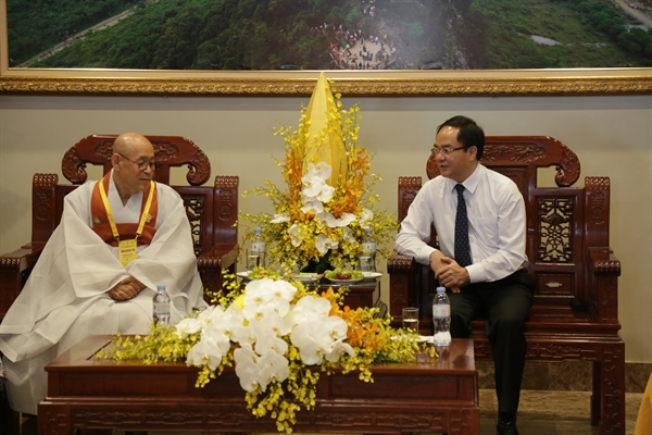 “Thay mặt Ban tổ chức đại lễ, chúng tôi xin cảm ơn đại lão hòa thượng và đoàn phật giáo Hàn Quốc đã nhận lời mời tham dự Đại lễ Vesak 2019. Hàn quốc và Việt Nam có mối quan hệ hợp tác tốt đẹp trong các lĩnh vực văn hóa, kinh tế, xã hội.Và đã có những bước phát triển rất mạnh mẽ trong thời gian vừa qua. Những thành tựu đó, có sự đóng góp rất lớn của phật giáo Hàn quốc và phật giáo Việt Nam”,Trưởng Ban Tôn giáo chính phủ khẳng định.