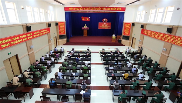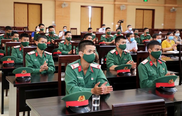 Bộ trưởng trao đổi với các cử tri là các chiến sĩ đóng quân trên địa bàn