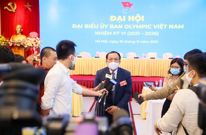 Chủ tịch Uỷ ban Olympic Việt Nam khoá VI Nguyễn Văn Hùng trả lời phỏng vấn báo chí