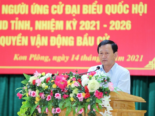 Phát biểu với cử tri thị trấn Măng Đen, huyện Kon Plông, Bộ trưởng Nguyễn Văn Hùng cho biết: “Những ngày qua tôi đã được đến trải nghiệm nhiều vùng đất trên địa bàn tỉnh Kon Tum. Và chiều hôm nay, vinh dự được tiếp xúc với cử tri của một thị trấn trẻ của huyện Kon Plông có nhiều lợi thế để phát triển.