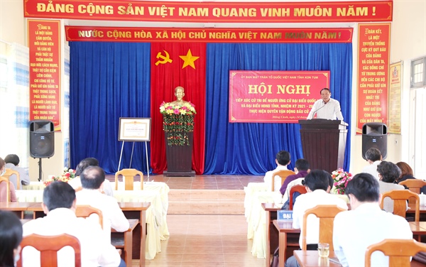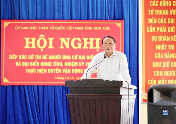 “Tôi nghĩ rằng những vấn đề lớn nêu trên, đó cũng là khái quát Chương trình hành động của chúng tôi trong 5 năm tới. Tôi mong muốn cử tri xã Măng Cành, cử tri huyện Kon Plông sẽ quan tâm theo dõi, giám sát, nhắc nhở chúng tôi thực hiện lời hứa này trước cử tri ngày hôm nay để chúng tôi hoàn thành trách nhiệm, góp phần cùng với Đảng bộ, chính quyền và nhân dân xây dựng tỉnh Kon Tum ngày càng vững mạnh”, Bộ trưởng bày tỏ.