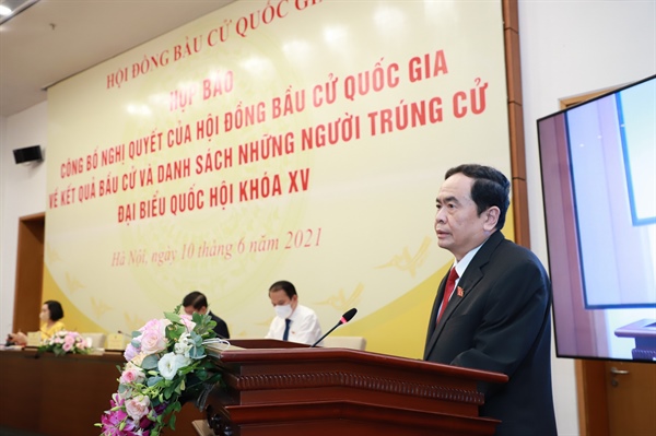 Phát biểu tại buổi họp báo, Phó Chủ tịch thường trực Quốc hội, Phó Chủ tịch thường trực HĐBCQG Trần Thanh Mẫn cho biết, cuộc bầu cử đại biểu Quốc hội khoá XV và Hội đồng nhân dân các cấp nhiệm kỳ 2021-2026 đã thành công tốt đẹp với tỉ lệ cử tri cả nước đi bầu cao nhất từ trước đến nay là 99,6 %.