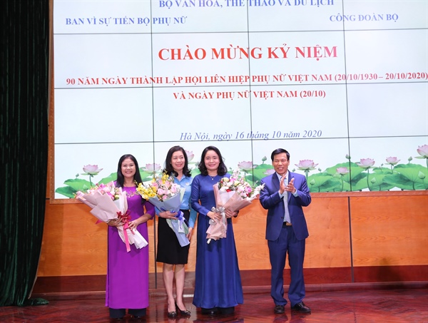 Phát biểu tại buổi gặp mặt, Bộ trưởng Nguyễn Ngọc Thiện đã gửi lời chúc mừng tới toàn thể chị em phụ nữ là cán bộ, CCVC, NLĐ đang công tác tại Bộ VHTTDL và các đơn vị thuộc Bộ. Bộ trưởng cho biết: “Tại Bộ VHTTDL, vai trò của các nữ cán bộ, CCVC, NLĐ càng ngày càng quan trọng, có đóng góp lớn để Bộ hoàn thành những nhiệm vụ mà Đảng, Nhà nước giao. Bộ VHTTDL cũng rất quan tâm tới việc đào tạo, bồi dưỡng, bổ nhiệm cán bộ nữ. Tôi tin tưởng với quyết tâm, sự tự tin, sẵn sàng vượt qua khó khăn, các chị em phụ nữ là cán bộ, CCVC, NLĐ của Bộ VHTTDL sẽ tiếp tục phát triển sự nghiệp, là chỗ dựa vững chắc cho gia đình, người thân, đóng góp cho sự phát triển bền vững của xã hội, của đất nước”.