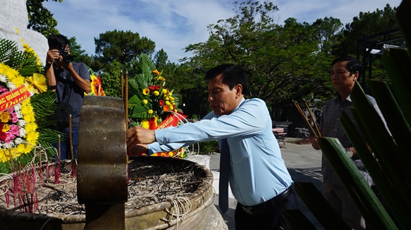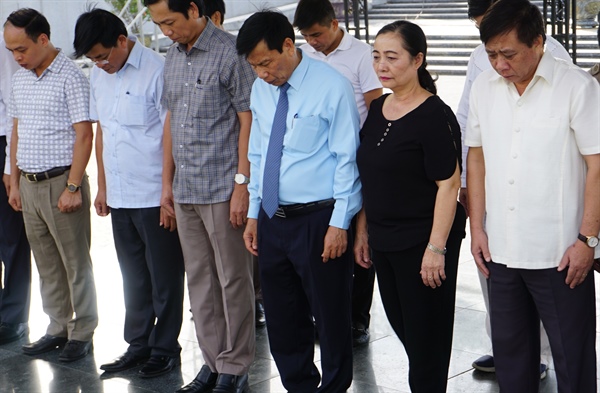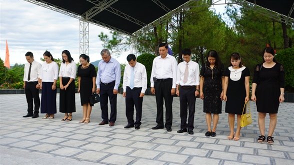 Đoàn viếng dành phút mặc niệm trước các liệt sĩ