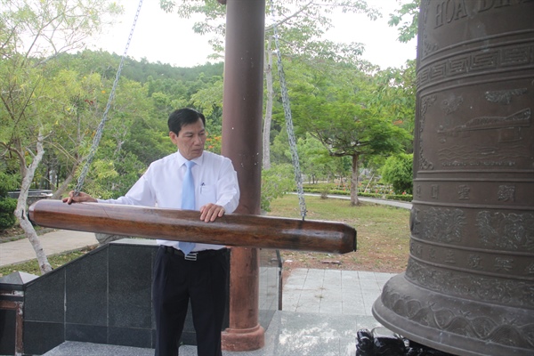 Bộ trưởng và lãnh đạo tỉnh Quảng Trị thỉnh 9 hồi chuông tại khu trung tâm của Nghĩa trang liệt sĩ quốc gia Trường Sơn