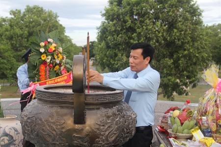 Trước đó, sáng 25.7, Bộ trưởng Nguyễn Ngọc Thiện và đoàn công tác Bộ HTTDL dâng hương tưởng nhớ các anh hùng liệt sĩ tại Nghĩa trang liệt sĩ TP Đồng Hới (tỉnh Quảng Bình).