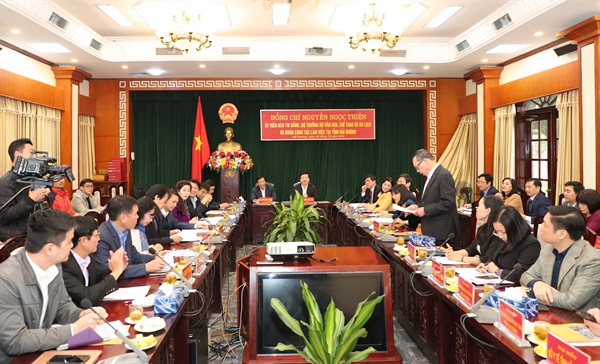 Báo cáo từ lãnh đạo Sở VHTTDL tỉnh Hải Dương cho biết, năm 2019, lĩnh vực VHTTDL của tỉnh đạt được nhiều kết quả tích cực, đóng góp quan trọng vào việc thực hiện kế hoạch phát triển kinh tế - xã hội của địa phương. Công tác tuyên truyền thực hiện các nhiệm vụ chính trị, quản lý nhà nước về văn hóa, bảo tồn, phát huy di sản văn hóa tiếp tục được quan tâm.