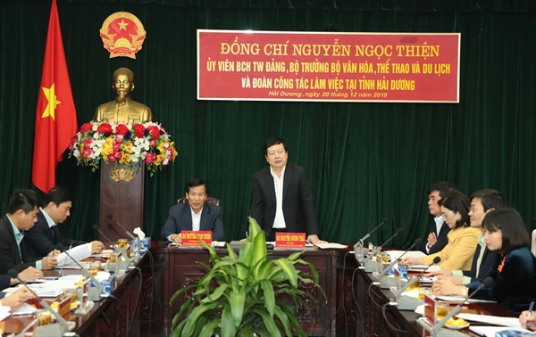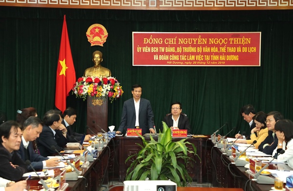 Phát biểu tại buổi làm việc, Bộ trưởng Nguyễn Ngọc Thiện đánh giá cao những kết quả đạt được của tỉnh Hải Dương trong thời gian qua. Theo đó, Hải Dương là tỉnh có tốc độ tăng trưởng nhanh, phát triển trên tất cả các lĩnh vực, đặc biệt là VHTTDL.