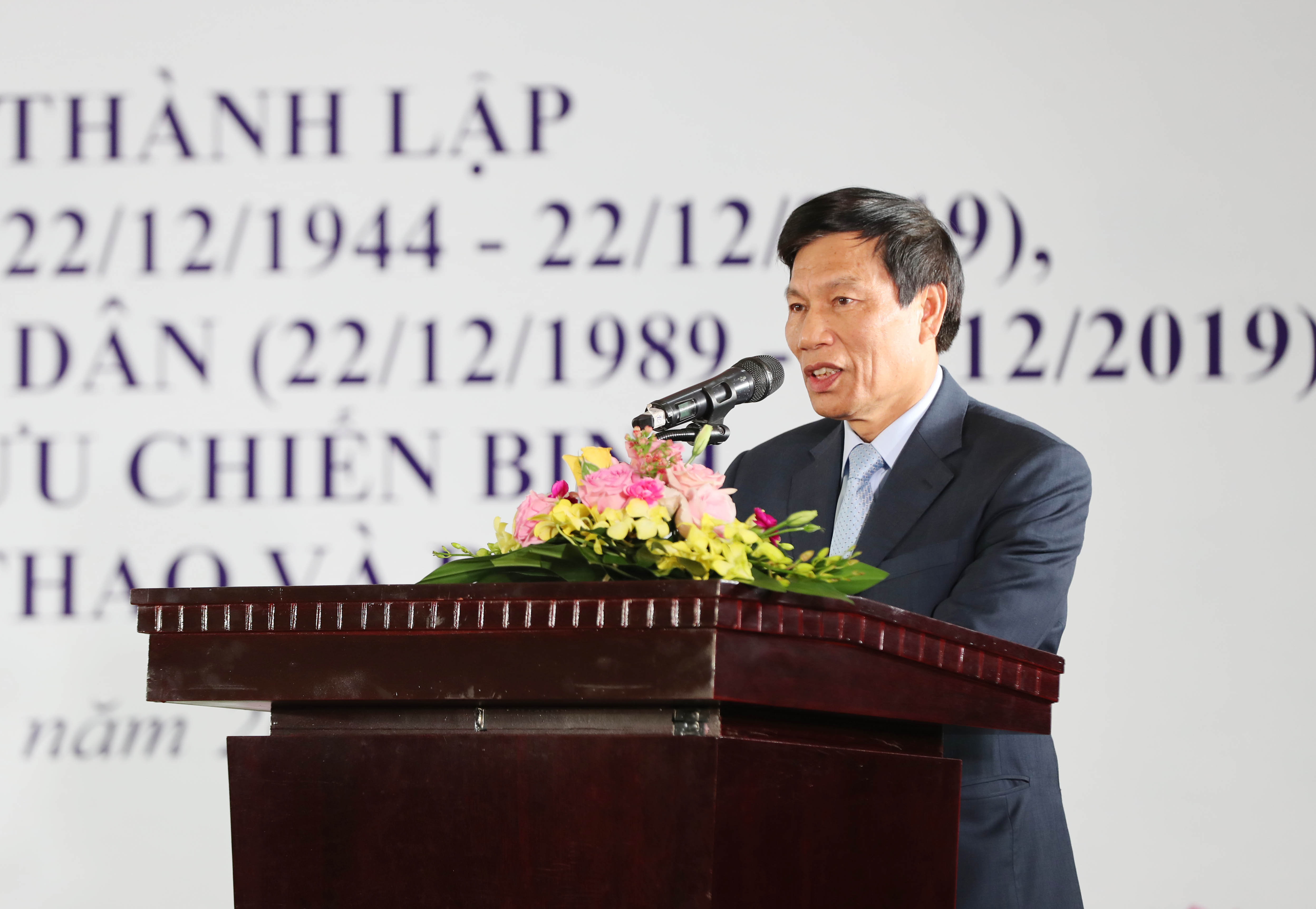Chúc mừng tới các cựu chiến binh của Bộ VHTTDL, Bộ trưởng Nguyễn Ngọc Thiện cám ơn sự cống hiến, đóng góp của những người lính. Bộ trưởng cũng khẳng định hình ảnh anh bộ đội cụ Hồ luôn in đậm trong mỗi trái tim người dân Việt Nam và vai trò của mỗi người lính không chỉ thể hiện trong thời kỳ chiến tranh, chiến đấu chống kẻ thù mà còn thể hiện trong phong trào xây dựng đất nước, đặc biệt mỗi cựu chiến binh cùng góp phần với Đảng bộ, Chi bộ thực hiện tốt nhiệm vụ của cơ quan, đơn vị mình. Cùng với việc ghi nhận những năng nổ, tích cực và có hiệu quả của những phong trào, hoạt động giúp đỡ nhau của Hội Cựu chiến binh Bộ, Bộ trưởng Nguyễn Ngọc Thiện cũng mong trong thời gian sắp tới Hội Cựu chiến binh tiếp tục củng cố và phát triển vai trò của hội cũng như phát huy truyền thống anh bộ đội cụ Hồ.