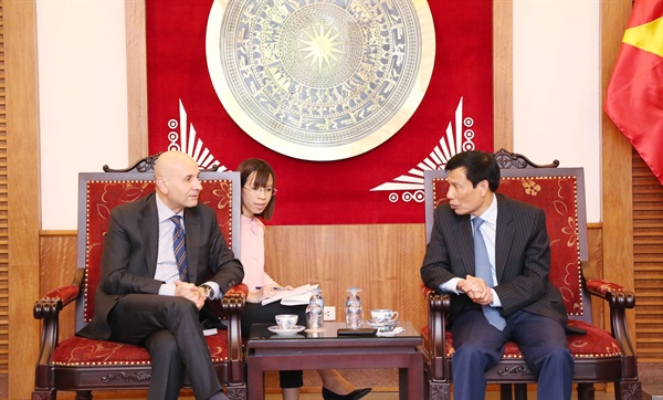 Ngài Đại sứ cũng đã chia sẻ thông tin về một số chương trình, sự kiện dự kiến được tổ chức trong thời gian tới và đề nghị phía Bộ VHTTDL Việt Nam phối hợp, tạo điều kiện triển khai như chương trình hòa nhạc, mỹ thuật, thiết kế, văn thơ, du lịch, bóng đá, đua xe đạp tại một số thành phố lớn của Việt Nam…