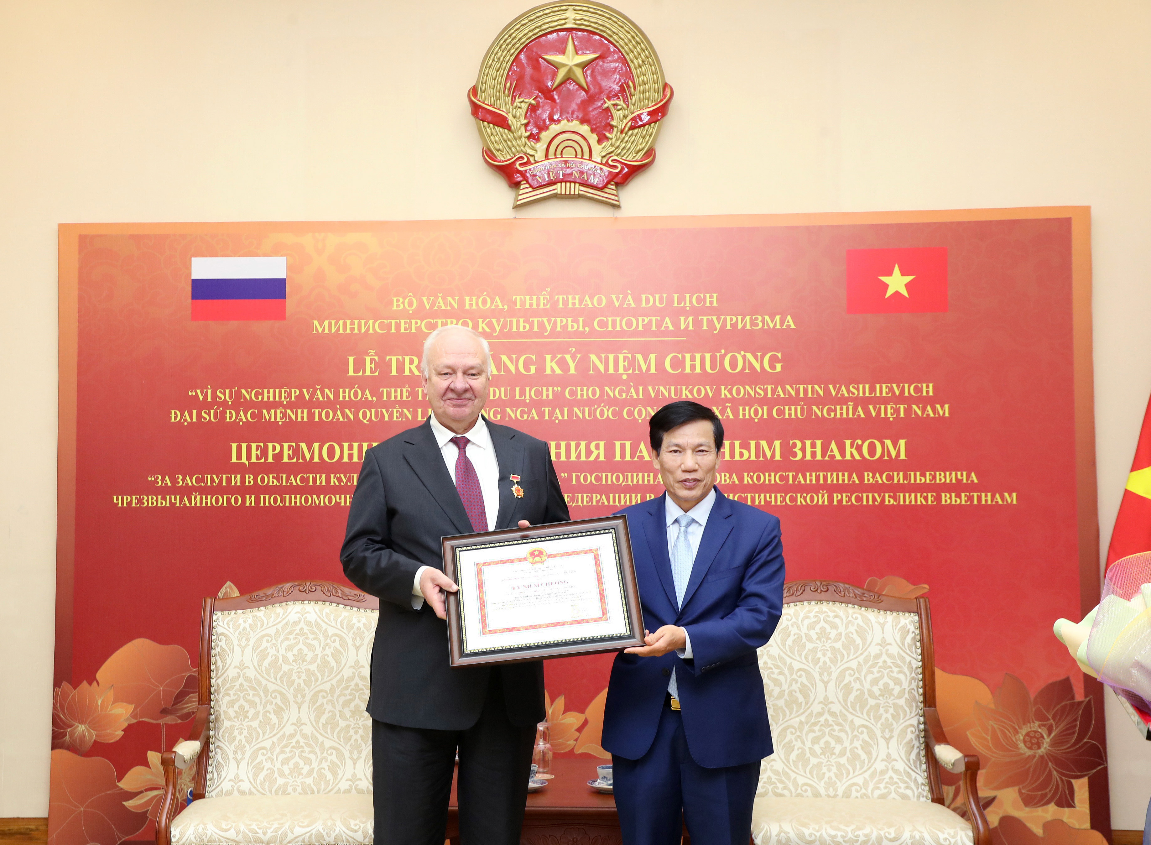 Bộ trưởng Nguyễn Ngọc Thiện trao tặng Kỷ niệm chương cho Đại sứ LB Nga