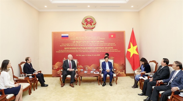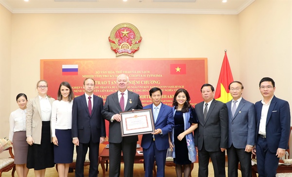 Đón nhận Kỷ niệm chương Vì sự nghiệp Văn hóa, Thể thao và Du lịch từ Bộ trưởng Nguyễn Ngọc Thiện ghi nhận những đóng góp tích cực của ông trong lĩnh vực VHTTDL, góp phần vào việc phát triển quan hệ đối tác chiến lược toàn diện Việt Nam- LB Nga, Đại sứ Vnukov Konstantin Vasilievich chia sẻ, đối với ông, Kỷ niệm chương là phần thưởng cao quý ghi nhận đóng góp của toàn bộ cán bộ, nhân viên Đại sứ quán Nga tại Việt Nam trong những năm qua đã cùng ông đóng góp cho sự thúc đẩy mối quan hệ Việt Nam- LB Nga, đặc biệt về VHTTDL.