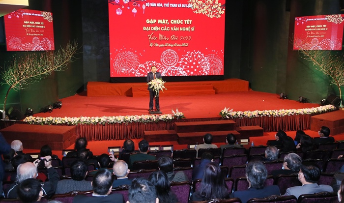 Bộ trưởng Nguyễn Văn Hùng gửi lời chúc mừng năm mới tới đội ngũ các văn nghệ sĩ và chia sẻ, trong không khí một mùa xuân mới đang về, Bộ VHTTDL tổ chức cuộc gặp mặt với các văn nghệ sĩ tiêu biểu, qua đó để lãnh đạo Bộ được trân trọng nói lời cảm ơn, ghi nhận đóng góp của các văn nghệ sĩ trong những công việc của Bộ thời gian qua. Bộ trưởng nhấn mạnh, Bộ luôn mong muốn cùng đồng hành với các văn nghệ sĩ trong thực hiện nhiệm vụ chấn hưng văn hóa, như chỉ đạo của Tổng Bí thư tại Hội nghị Văn hóa toàn quốc vừa qua.