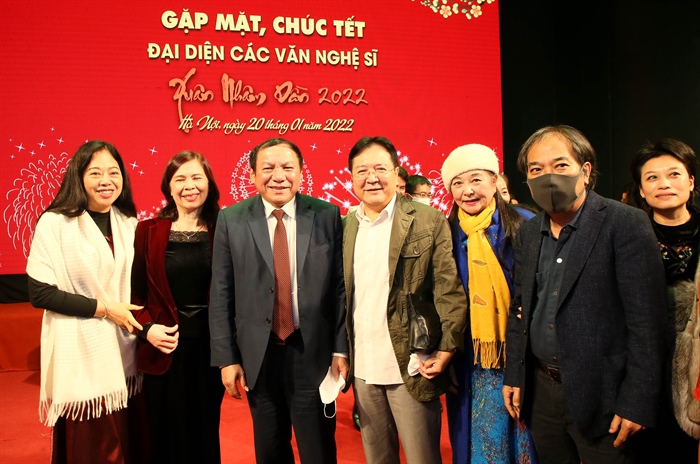 Cùng dự buổi gặp mặt có các Thứ trưởng Tạ Quang Đông, Trịnh Thị Thủy; đại diện các cơ quan Trung ương và địa phương, lãnh đạo Liên hiệp các Hội VHNT Việt Nam, lãnh đạo các Hội VHNT chuyên ngành, các văn nghệ sĩ tiêu biểu...