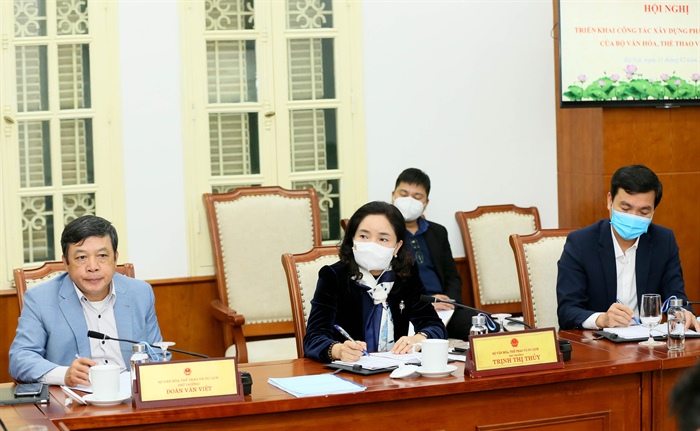 Đánh giá về tình hình thực hiên nhiệm vụ xây dựng pháp luật của Bộ trong năm 2021, Bộ trưởng nêu rõ, do xác định đúng và trúng chủ đề Năm Xây dựng cơ chế chính sách, Bộ đã tập trung vào nhiệm vụ xây dựng pháp luật; chuyển tư duy từ làm văn hóa sang quản lý Nhà nước bằng văn hóa, thông qua công cụ pháp luật.