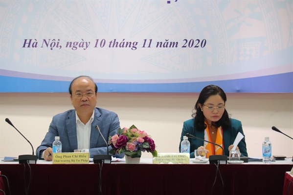 Thứ trưởng Bộ VHTTDL Trịnh Thị Thủy và Thứ trưởng Bộ Tư Pháp Phan Chí Hiếu chủ trì Hội nghị