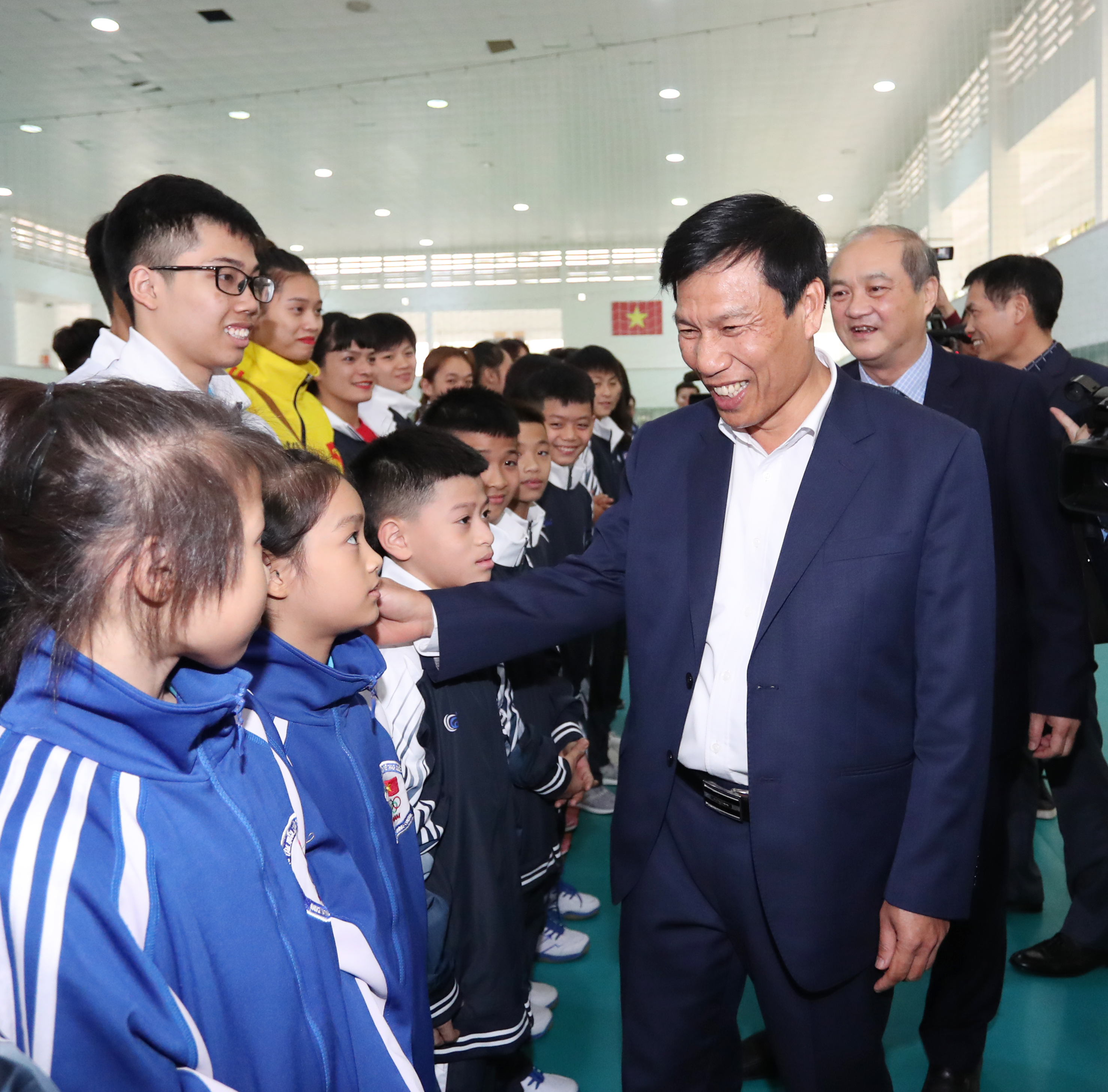 Bộ trưởng Nguyễn Ngọc Thiện thăm đội tuyển trẻ tại Trung tâm Huấn luyện thể thao Quốc gia Hà Nội (2.2019 )