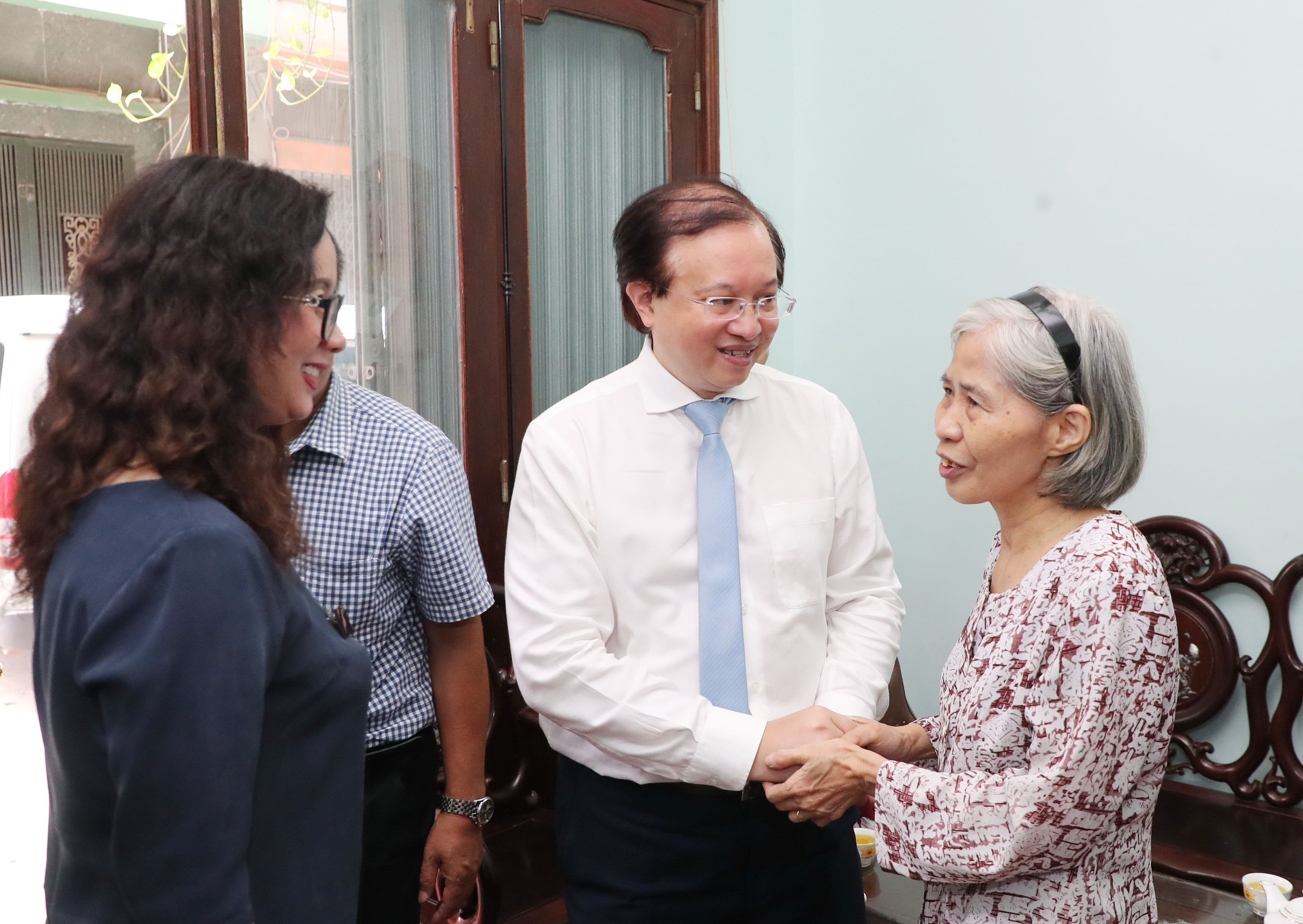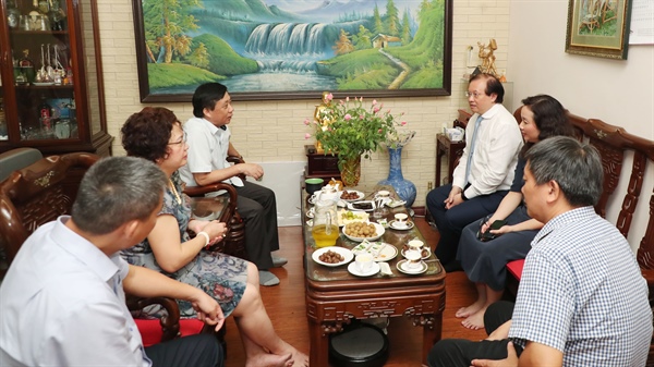 Đoàn thăm gia đình bà Vũ Thị Vân, vợ liệt sĩ Nguyễn Xuân Bái có con gái là đồng chí Nguyễn Tú Hương