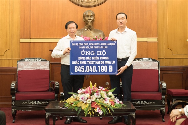 Bộ VHTTDL: Ủng hộ hơn 1,5 tỉ đồng hỗ trợ đồng bào các tỉnh miền Trung bị bão lũ