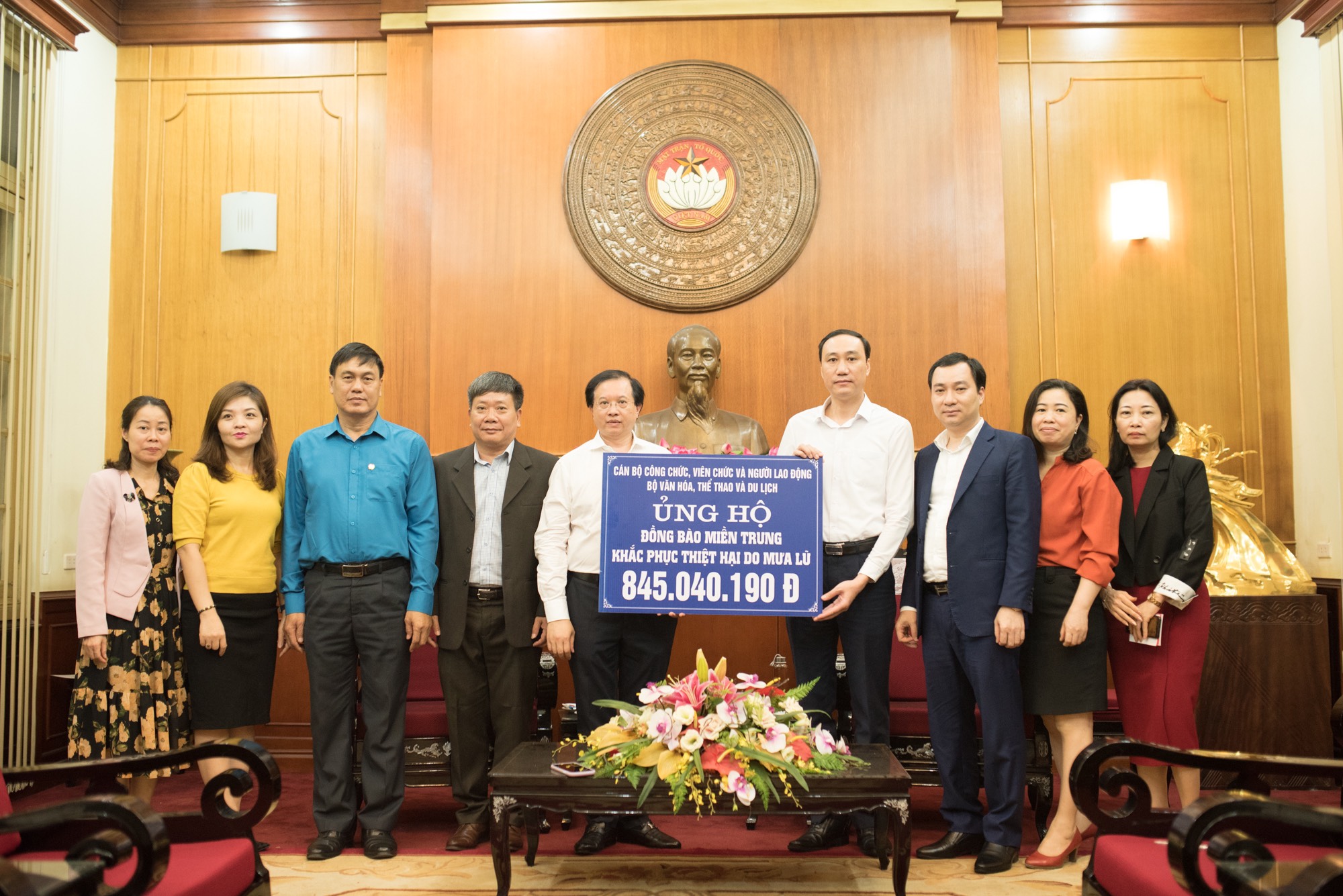 Thứ trưởng Bộ VHTTDL Tạ Quang Đông cho biết, thời gian qua tình hình lũ lụt đã và đang diễn ra rất phức tạp, gây hậu quả nặng nề cho người dân tại các tỉnh miền Trung... Trước tình cảnh “bão chồng bão, lũ chồng lũ” tại miền Trung, Bộ VHTTDL đã phát động tổ chức quyên góp ủng hộ đồng bào khu vực miền Trung đang gặp nhiều thiệt hại do đợt mưa lũ lịch sử gây ra. Đích thân Bộ trưởng Nguyễn Ngọc Thiện đã phát động trực tiếp ngay trong lãnh đạo các đơn vị trong khối trụ sở cơ quan Bộ VHTTDL tại 51 – 53 Ngô Quyền, Hà Nội và một số đơn vị trực thuộc. Công đoàn Bộ VHTTDL đã có văn bản gửi về các Công đoàn cơ sở, các đơn vị trực thuộc của Bộ yêu cầu toàn thể các đoàn viên Công đoàn, người lao động với tinh thần “tương thân tương ái, lá lành đùm lá rách, lá rách ít đùm lá rách nhiều” ủng hộ đồng bào miền Trung khắc phục hậu quả thiên tai, ổn định cuộc sống”. Số tiền thu từ đợt quyên góp lần này là 845.040.000 đồng. Thứ trưởng Tạ Quang Đông cho biết, trước đó, Tổng cục Thể dục Thể thao cũng đã trao 251.902.238 đồng, Liên đoàn bóng đá Việt Nam ủng hộ 239.945.238 đồng, Trung tâm Huấn luyện Thể thao Quốc gia Hà Nội ủng hộ 231.000.000 đồng cho Ủy ban Trung ương Mặt trận Tổ quốc Việt Nam để việc cứu trợ được kịp thời. Như vậy tổng số tiền mà cán bộ, công chức, viên chức và người lao động trong ngành VHTTDL quyên góp ủng hộ đợt này là hơn 1,56 tỉ đồng.