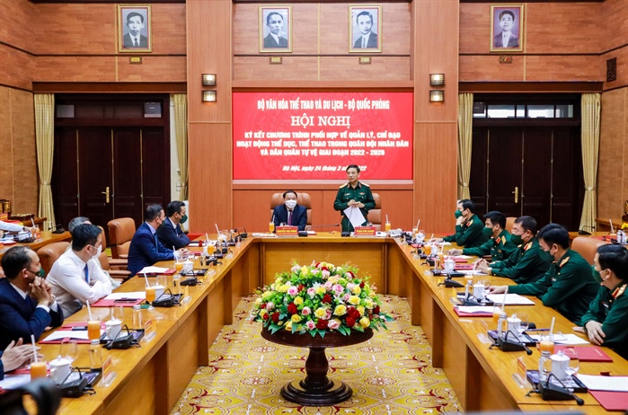 | Chương trình phối hợp giữa Bộ Quốc phòng và Bộ VHTTDL về quản lý, chỉ đạo hoạt động thể dục thể thao trong Quân đội nhân dân và dân quân tự vệ giai đoạn 2022-2026 gồm 7 nội dung, nhiệm vụ cụ thể, thiết thực nhằm nâng cao hơn nữa sức khỏe, thể lực, kỹ năng vận động phục vụ huấn luyện chiến đấu, công tác cho bộ đội và dân quân tự vệ để lực lượng này luôn sẵn sàng hoàn thành tốt nhiệm vụ chiến đấu bảo vệ Tổ quốc, cứu hộ, cứu nạn bảo vệ tính mạng và tài sản của nhân dân. Bộ VHTTDL sẽ phối hợp chặt chẽ với Bộ Quốc phòng trong việc triển khai thực hiện 7 nội dung, nhiệm vụ, đồng thời sẽ phối hợp xây dựng và triển khai thực hiện các mục tiêu, nhiệm vụ về TDTT Quân đội trong Chiến lược phát triển TDTT đến năm 2030, tầm nhìn đến năm 2045. |
