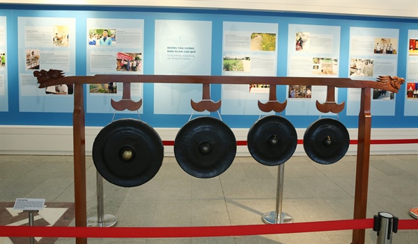 Bộ nhạc cụ của đồng bào dân tộc Thổ của nghệ nhân Trương Thanh Hải huyện Quỳ Hợp, tỉnh Nghệ An lần đầu tiên được trưng bày tại triển lãm
