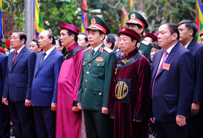 Với tấm lòng thành kính tri ân công đức Tổ tiên, thể hiện đạo lý “Uống nước nhớ nguồn” của dân tộc Việt Nam, Chủ tịch nước Nguyễn Xuân Phúc cùng Trưởng Ban Nội chính Trung ương Phan Đình Trạc; Bộ trưởng Bộ Quốc phòng, Đại tướng Phan Văn Giang; Chủ tịch Ủy ban Trung ương Mặt trận Tổ quốc Việt Nam Đỗ Văn Chiến; Phó Thủ tướng Chính phủ Vũ Đức Đam; Bộ trưởng Bộ VHTTDL Nguyễn Văn Hùng ; Bí thư Tỉnh uỷ Phú Thọ Bùi Minh Châu; Chủ tịch UBND tỉnh Phú Thọ Bùi Văn Quang vào Thượng cung dâng hương, hoa bày tỏ lòng biết ơn sâu sắc các bậc tiền nhân đã có công dựng nước để con cháu nối tiếp truyền thống Lạc Hồng xây dựng đất nước Việt Nam giàu đẹp, văn minh như ngày hôm nay.