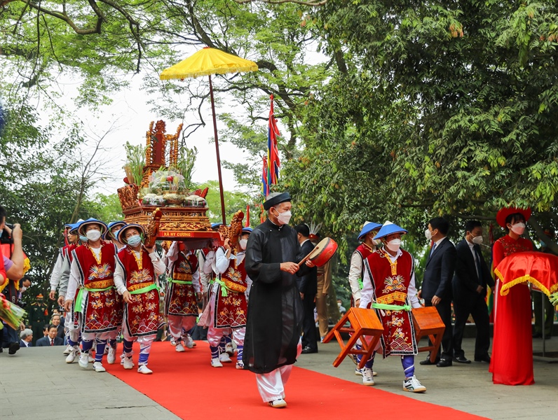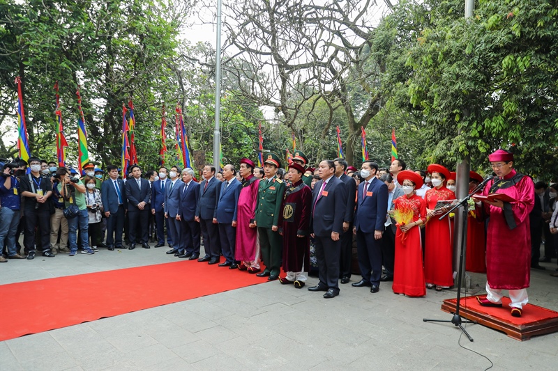 Sau phần đọc Chúc văn, Chủ tịch nước cùng các lãnh đạo Ðảng, Nhà nước, các cơ quan Trung ương, các địa phương, lãnh đạo tỉnh Phú Thọ vào Thượng cung dâng hương, hoa, lễ vật tri ân, tưởng nhớ công đức các Vua Hùng và các bậc tiền nhân.