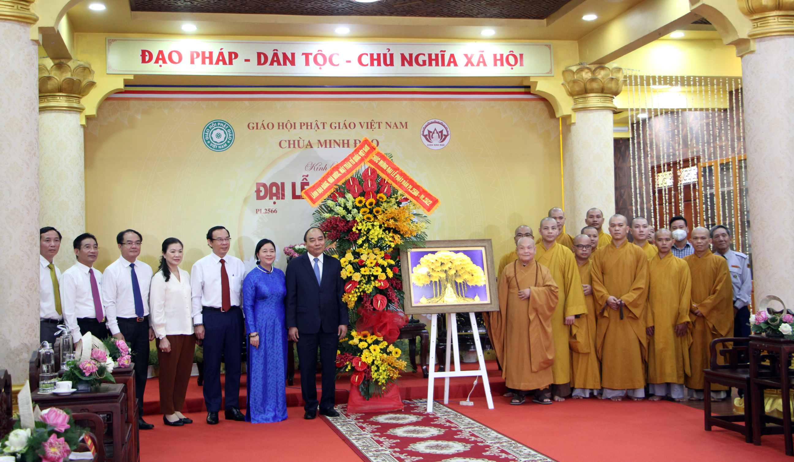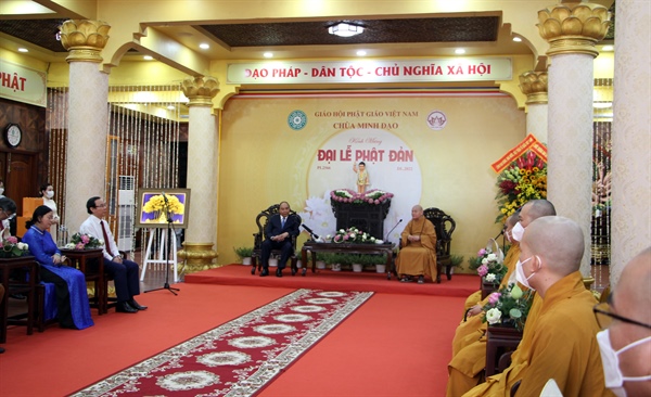 Sáng cùng ngày, Chủ tịch nước Nguyễn Xuân Phúc và đoàn công tác cũng đã đến thăm, chúc mừng Đại lễ Phật đản Chùa Minh Đạo do Hòa thượng Thích Thiện Nhơn, Chủ tịch Hội đồng Trị sự Giáo hội Phật giáo Việt Nam làm Viện chủ.