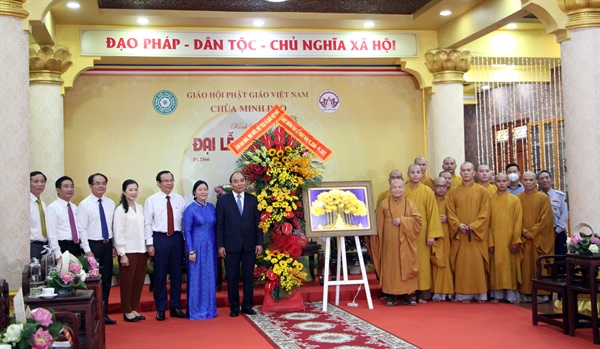 Chủ tịch nước Nguyễn Xuân Phúc và đoàn lãnh đạo chúc mừng Đại lễ Phật đản tại Chùa Minh Đạo