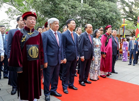 Chủ tịch nước Nguyễn Xuân Phúc và các đại biểu dâng hương tưởng niệm các vua Hùng