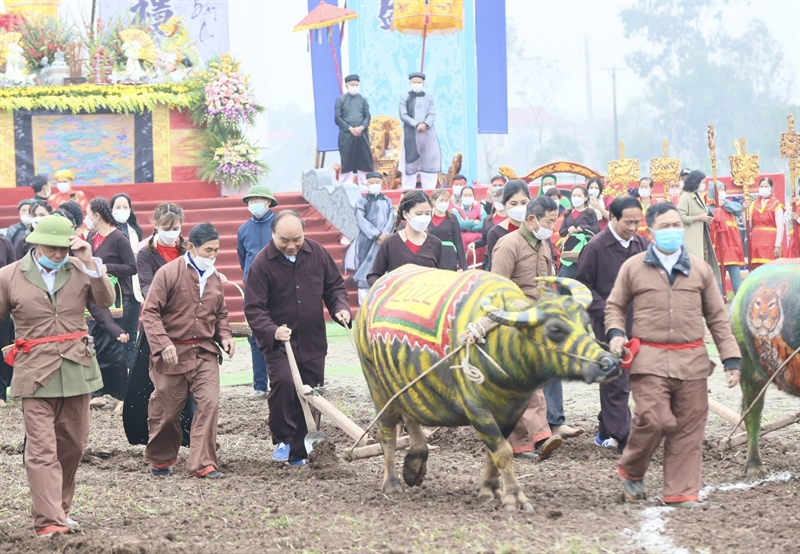 Chủ tịch nước Nguyễn Xuân Phúc đích thân xuống đồng cày ruộng cầu cho một năm mưa thuận, gió hòa