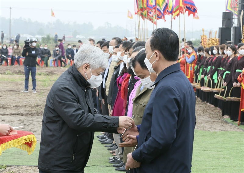 Chủ tịch nước Nguyễn Xuân Phúc cùng lãnh đạo các bộ, ban, ngành dâng hương tại Lễ Tịch điền Đọi Sơn