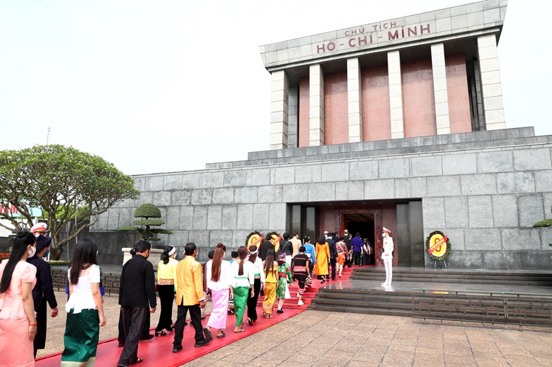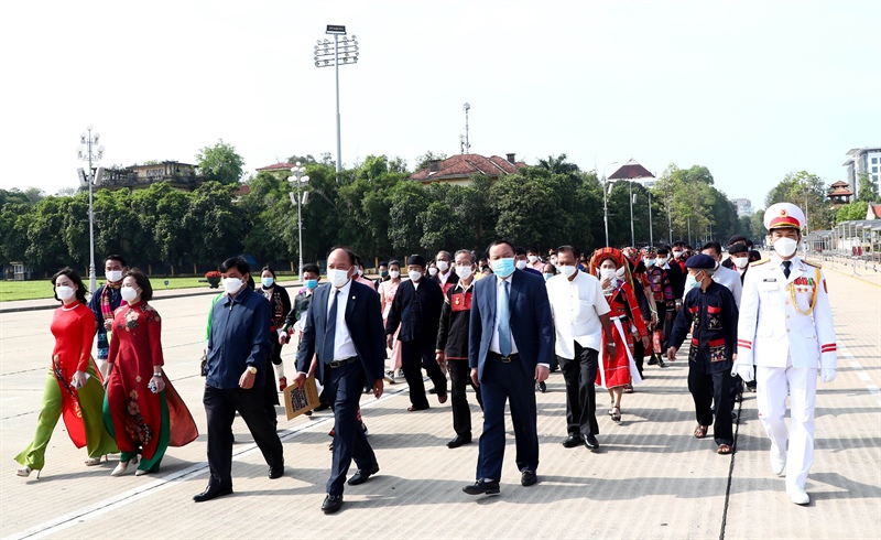 Trước đó, các đại biểu vào Lăng viếng Bác và thăm nhà sàn, ao cá Bác Hồ
