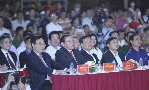 “Sinh thời, Bác Hồ muôn vàn kính yêu của chúng ta luôn nhấn mạnh vai trò đặc biệt quan trọng của văn hóa đối với phát triển đất nước. Theo Người, văn hóa chính là hồn cốt của một dân tộc- là những tinh hoa của cộng đồng dân tộc Việt Nam được hun đúc qua hàng ngàn năm lịch sử, văn hóa vừa là mục tiêu, vừa là động lực thúc đẩy sự phát triển. Phát triển văn hóa phải được xem là một trong những đột phá quan trọng nhất để bảo đảm cho sự phát triển bền vững đất nước. Cũng với ý nghĩa quan trọng đó mà cách đây hơn 7 thập niên , Bác Hồ khẳng định “Văn hóa soi đường quốc dân đi”…”, Bộ trưởng Nguyễn Văn Hùng phát biểu.