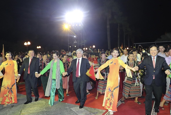 Dự ngày hội vui của cộng đồng 54 dân tộc Việt Nam có Ủy viên Bộ Chính trị, Phó Thủ tướng Chính phủ Phạm Bình Minh; Bí thư Trung ương Đảng, Chủ tịch Ủy ban Trung ương Mặt trận Tổ quốc Việt Nam Đỗ Văn Chiến; Ủy viên TƯ Đảng, Bộ trưởng Bộ VHTTDL Nguyễn Văn Hùng; Ủy viên TƯ Đảng, Bộ trưởng- Chủ nhiệm Ủy ban Dân tộc  Hầu A Lềnh; Ủy viên TƯ Đảng, Thiếu tướng Lê Tấn Tới, Thứ trưởng Bộ Công an cùng  lãnh đạo các Ban, Bộ, ngành Trung ương và các địa phương;  các đại biểu nhân sĩ, trí thức, nghệ nhân đại diện 54 dân tộc anh em…