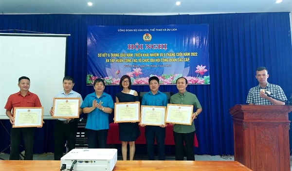Hội nghị sơ kết 6 tháng đầu năm, triển khai nhiệm vụ 6 tháng cuối năm 2022 và tập huấn công tác tổ chức Đại hội công đoàn các cấp nhiệm kỳ 2023- 2028 có sự tham gia của gần 100 cán bộ công đoàn chủ chốt ở công đoàn trực thuộc Công đoàn Bộ VHTTDL