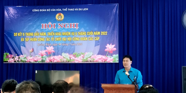 Hội nghị sơ kết 6 tháng đầu năm, triển khai nhiệm vụ 6 tháng cuối năm 2022 và tập huấn công tác tổ chức Đại hội công đoàn các cấp nhiệm kỳ 2023- 2028 có sự tham gia của gần 100 cán bộ công đoàn chủ chốt ở công đoàn trực thuộc Công đoàn Bộ VHTTDL